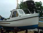 Uit Engeland afkomstige zeewaardig werkbootje. Uitgerust met een watergekoelde BMW diesel van 10 pk. Stoere boot met aluminium ramen en teakhouten railing. De ruime kuip biedt zitplaats aan vijf personen. De afmetingen zijn 5.50 bij 2.00m.